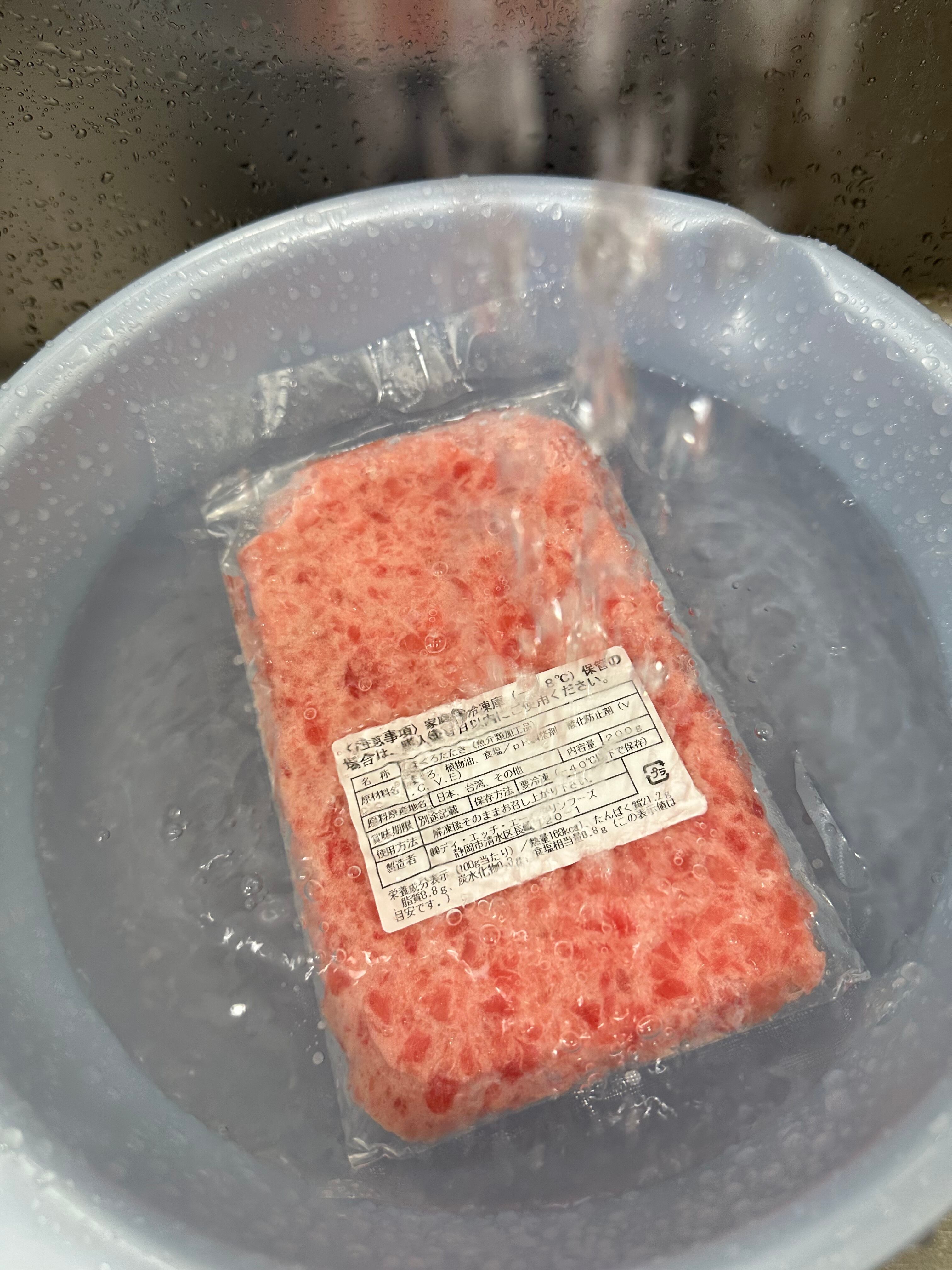 パックごと水道水(流水)につけるだけで10分以内で解凍